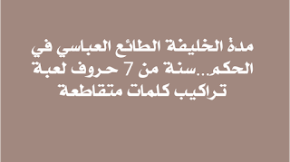 مدة الخليفة الطائع العباسي في الحكم سنة من سبعة 7 حروف